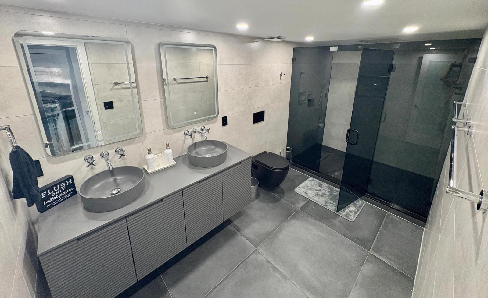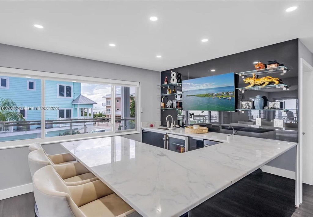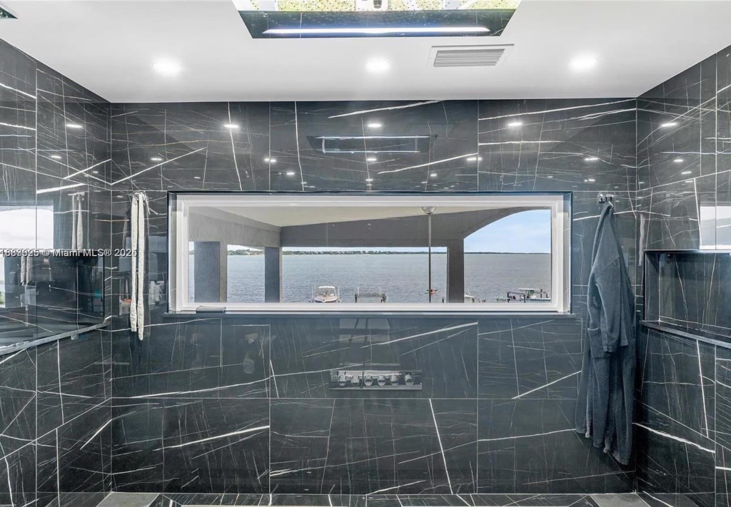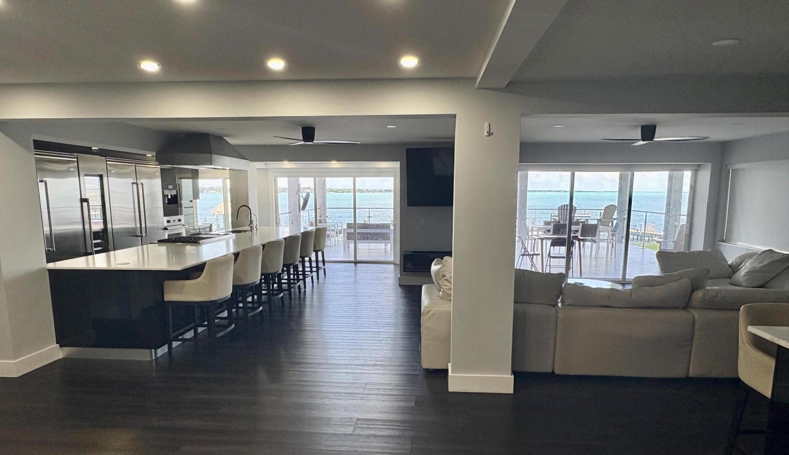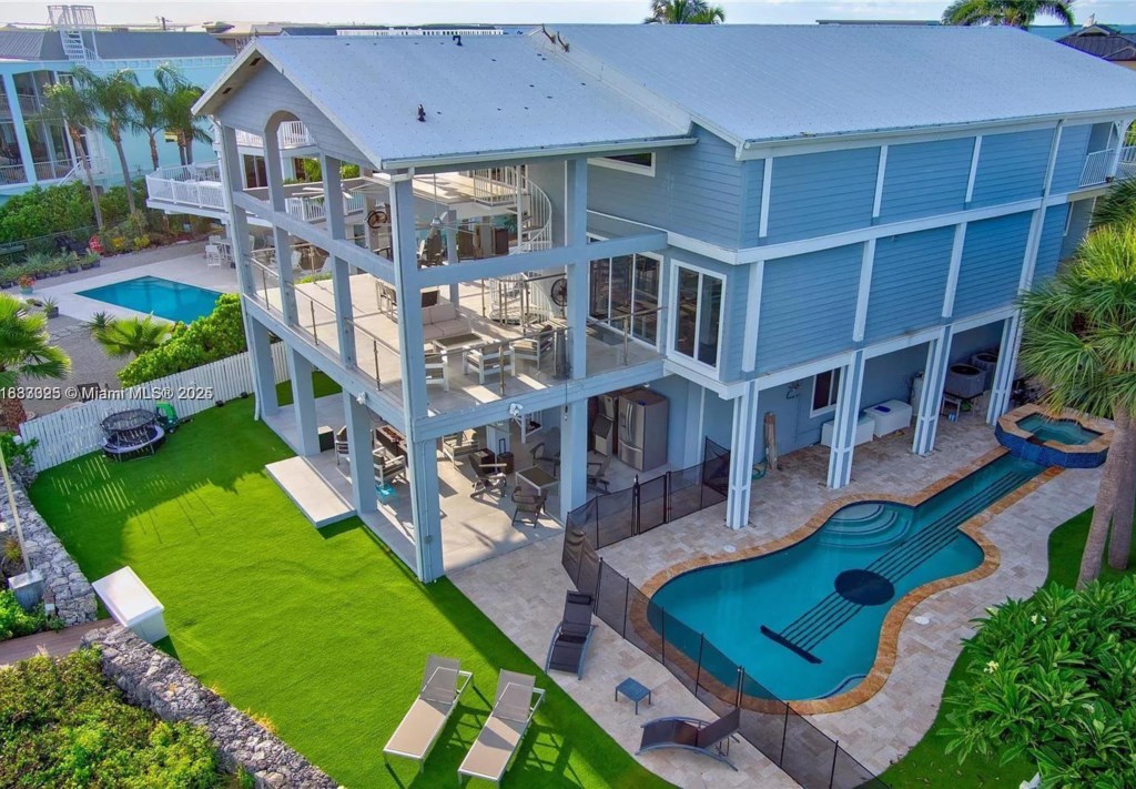 Rock & Roll Island, 6-bed, 7-bath Ocean View, enormous, 3 floor Estate. With magnificent Oceanfront Views and sunsets. Featuring: a unique custom guitar-shaped pool, an elevator, a boat dock and a shower ... with an ocean views! Designed for entertaining large groups: 3 stunning oceanfront patios and a viewing tower. It offers 2 modern kitchens, multiple indoor and outdoor living, dining, and recreation areas. A fully equipped sports bar ideal for hosting large groups. The home includes a dedicated ocean-view office, a kids’ room and a separate apartment, with its own kitchen and a bedroom that can sleep 8. A luxurious master suite with: connected king and queen beds, that sleeps 4. Unique master bathroom with: a shower with an Ocean View, a whirlpool bathtub and a separate toilet room, inside. Huge master closet. Perfect for family gatherings, reunions, or an intimate seaside wedding, this one-of-a-kind retreat blends style, space, and breathtaking scenery.