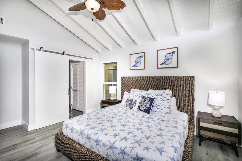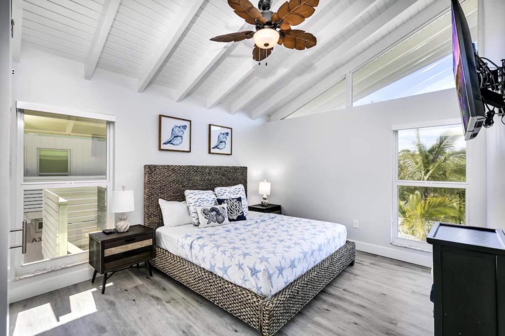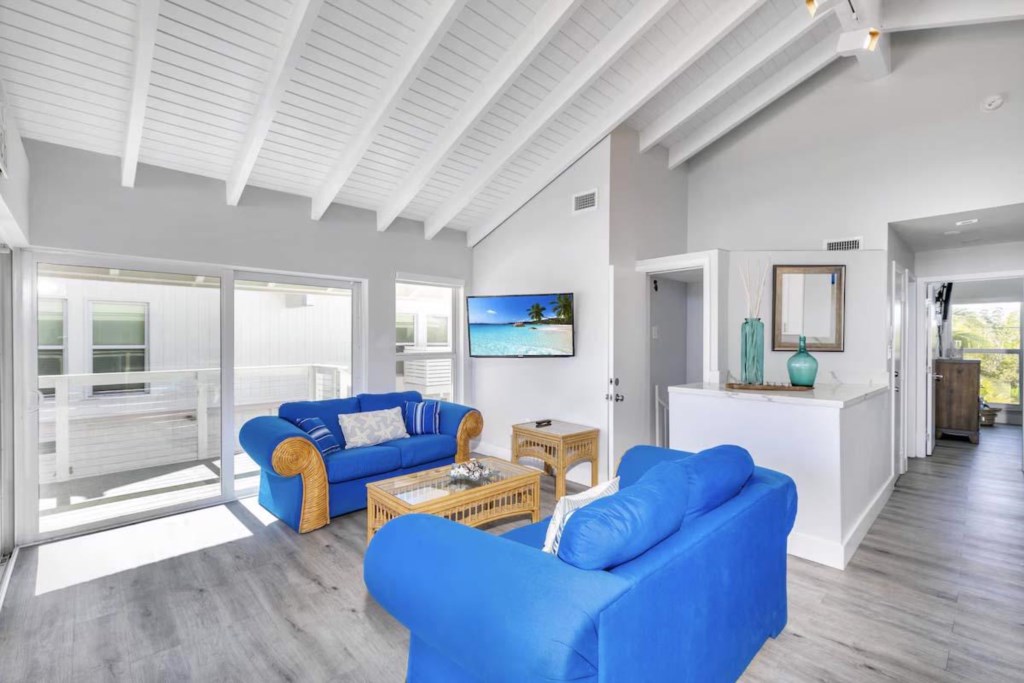 With its soaring ceilings and open, sun-drenched layout, this villa is a serene escape for up to six guests. It boasts a gourmet island kitchen, two distinct dining spaces, and three comfortable lounge areas, both indoor and outdoor—all designed to create endless coastal memories. It was completely renovated in 2020.
