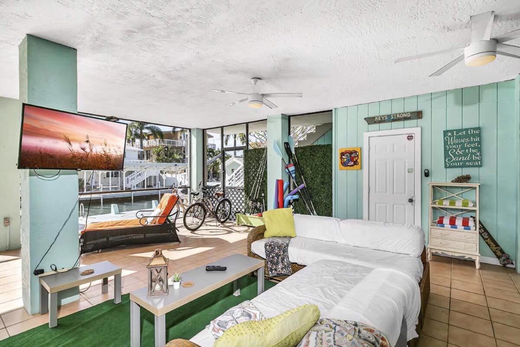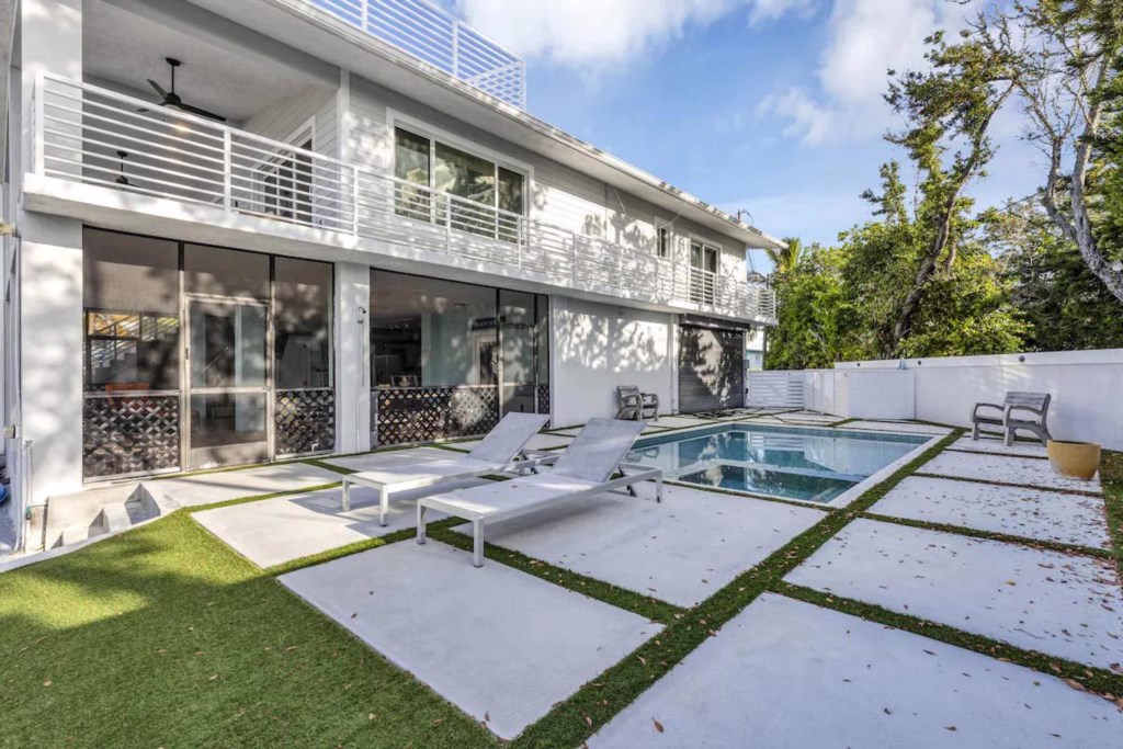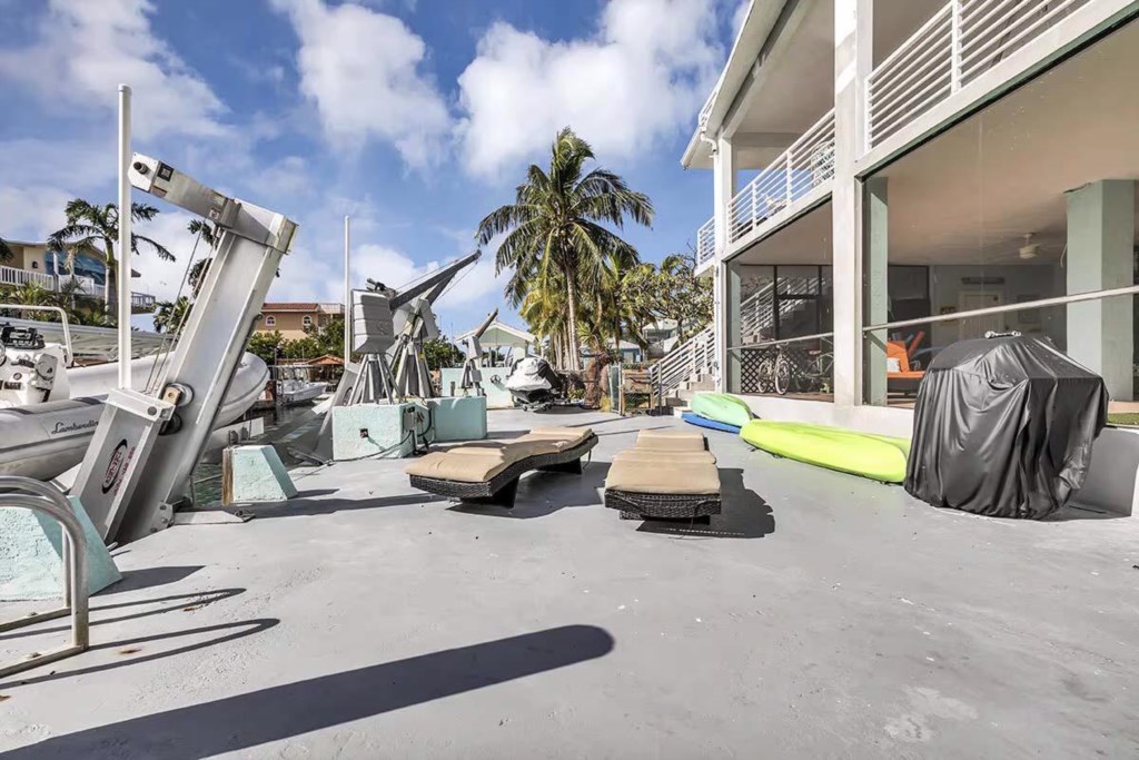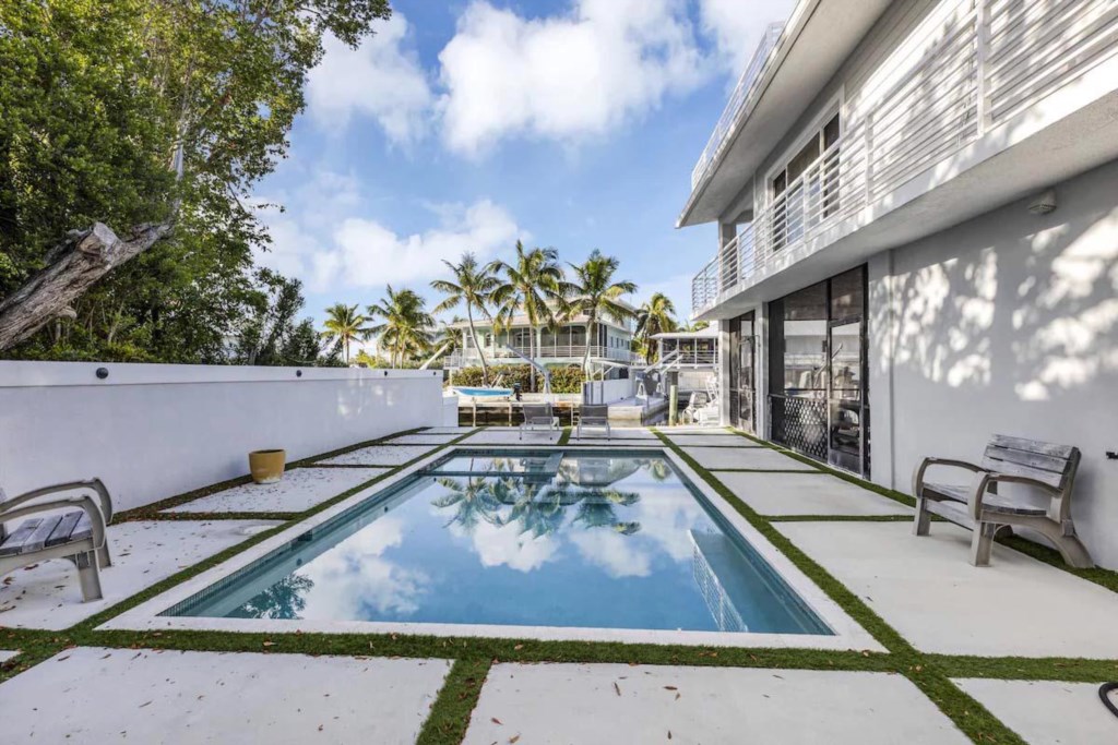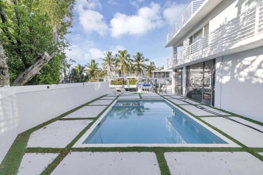 This is a 2 bedroom, 1 bathroom waterfront 1st floor of a 2 story house that is 200 feet from the Atlantic Ocean. It has a pool and a dock for a 24 foot boat. It is a ground floor house. There is another unit on the 2nd floor with its own entrance. There are bikes, fishing gear, Kayaks & Paddle Boards, etc... for your free use. It is a half mile off U.S. 1 at Mile Marker 99.5 in a quiet neighborhood in Key Largo. This is the perfect base for you diving, fishing, snorkeling adventures in Key largo.